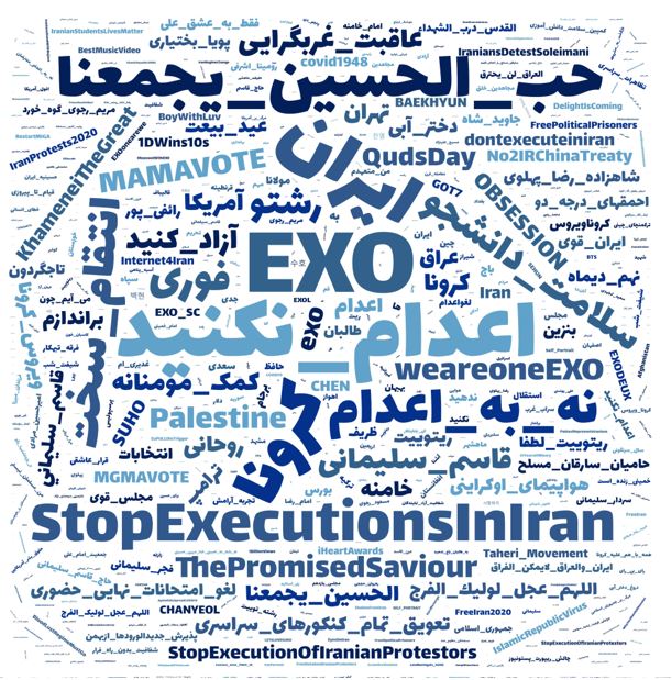 همان طور که در بررسی هشتک یک سال گذشته (مرداد ماه 1398 تا مرداد 1399) اینستاگرام فارسی مشاهده می کنید اصلی ترین کلمات با سایز بزرگتر مشخص شده است، این نمودار بر اساس پست های منتشر شده توسط کاربران فارسی زبان شکل گرفته است. هشتگ هایی مانند ایران، تهران، عشق، کرونا، پرسپولیس، استقلال بیشتر سایر هشتگ ها مورد استفاده قرار گرفته است و بعد از آن شهر هایی از جمله کوردستان، مشهد، شیراز، اصفهان، تبریز، کرمانشاه، بلوچستان، خوزستان بیشترین هشتگ ها بوده اند.
