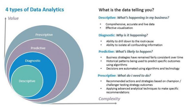 از بالا به پایین سطوح، ارزش تحلیل بالاتر خواهد رفت و در مقابل پیچیدگیهای پیادهسازی هم بسیار بیشتر خواهد شد. هرچند با توجه به نیاز هر مجموعه باید داده کاوی متناسب با آن سطح استفاده شود و لزوما همه جا نیاز به پیش بینی و یا تجویز نیست و در بعضی موراد توصیف کفایت می کند.