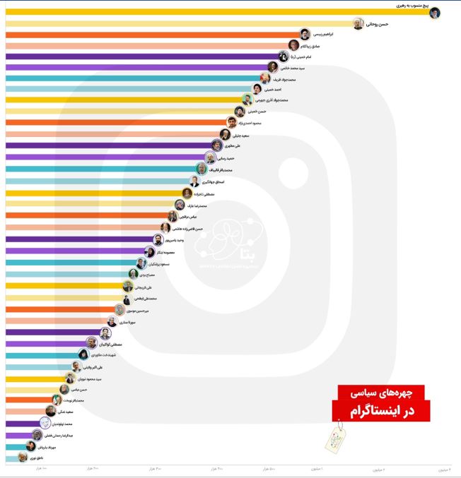 با بررسی انجام شد از سوی مرکز پژوهشی بتا ترتیب سیاسیون که در بستر اینستاگرام فعال هستند بر اساس تعداد دنبال کننده به صورت زیر است.